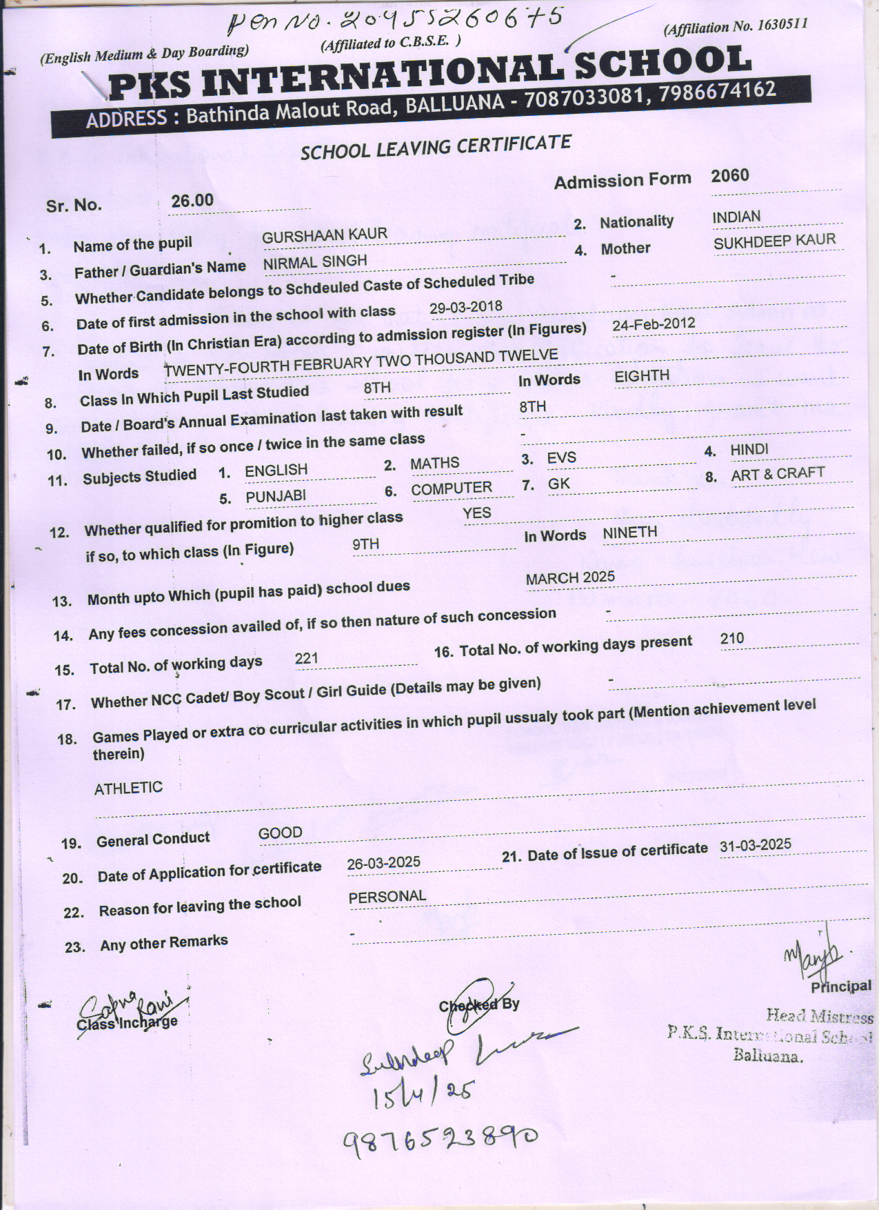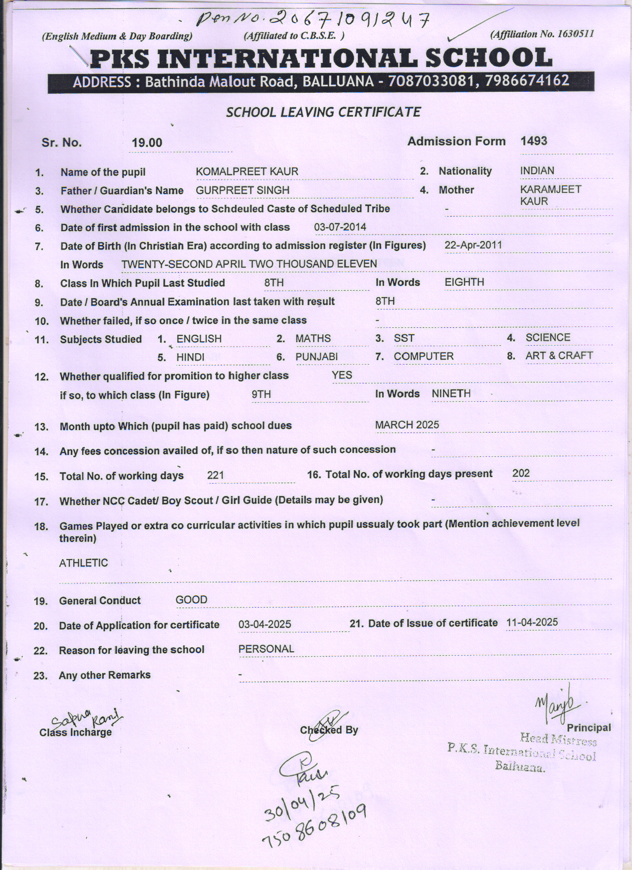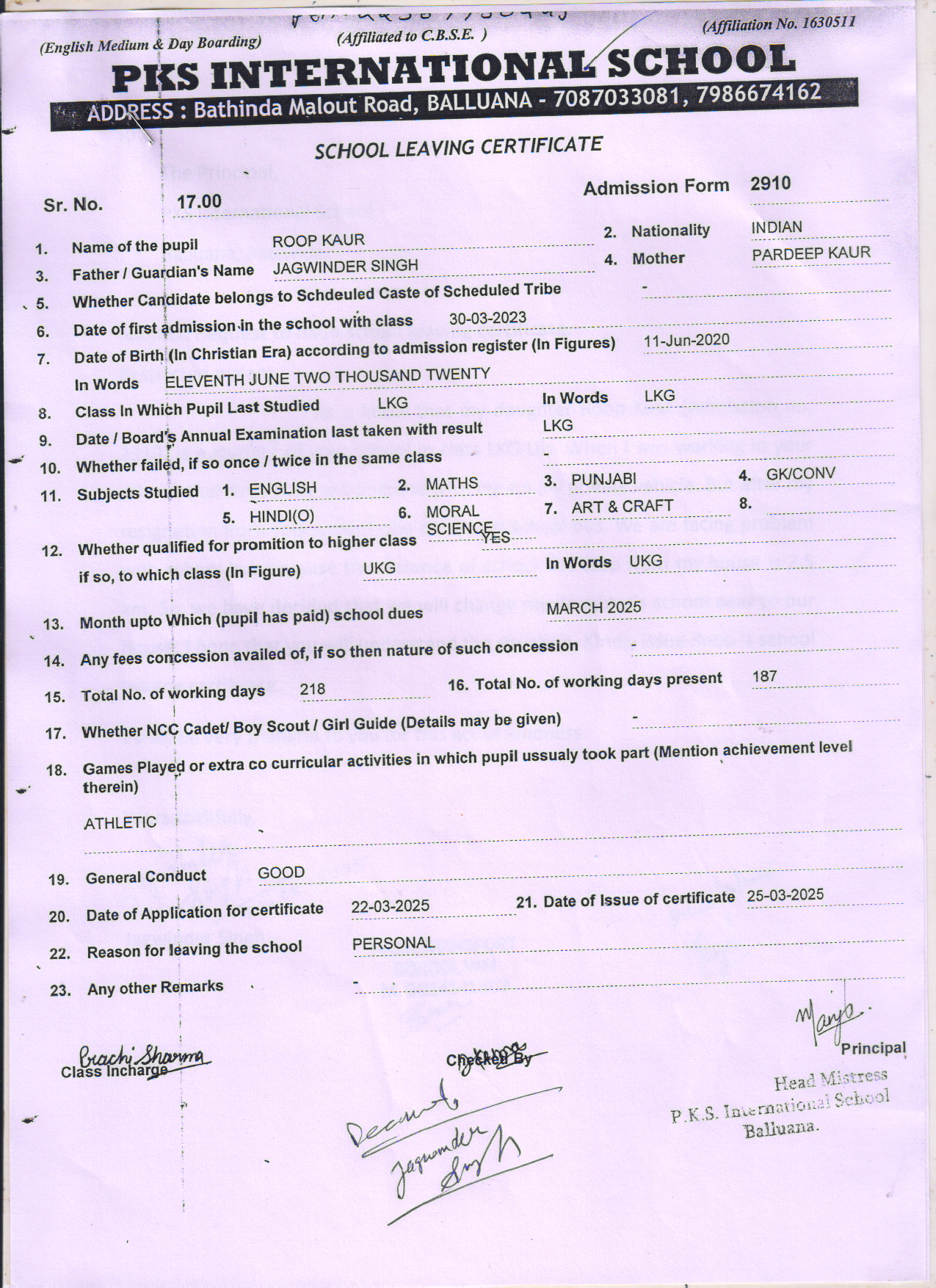 | 8 | Roop Kaur | 2910 | UKG | View |