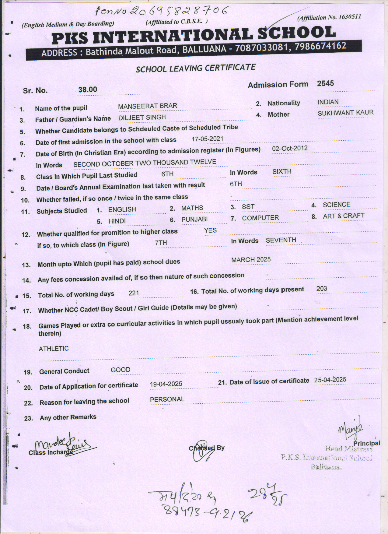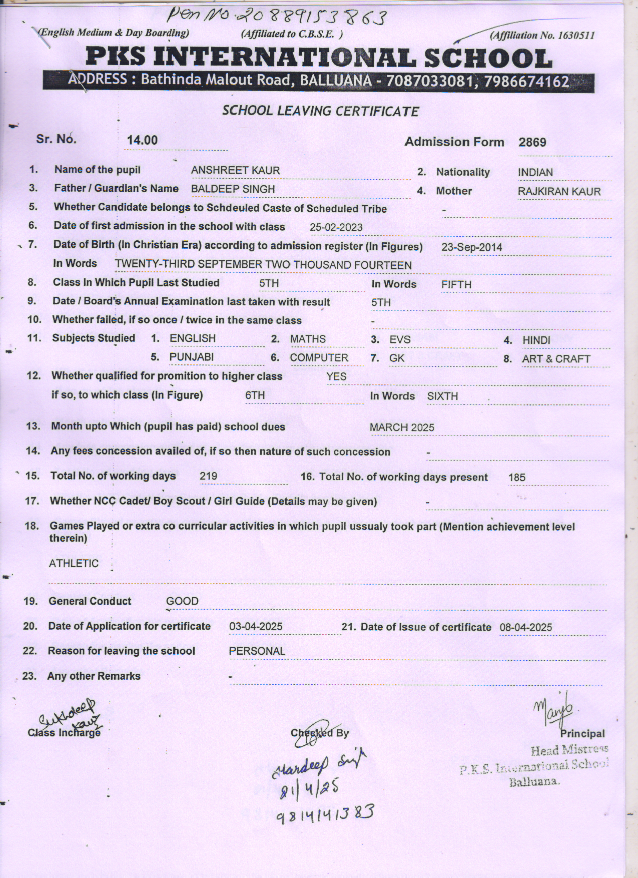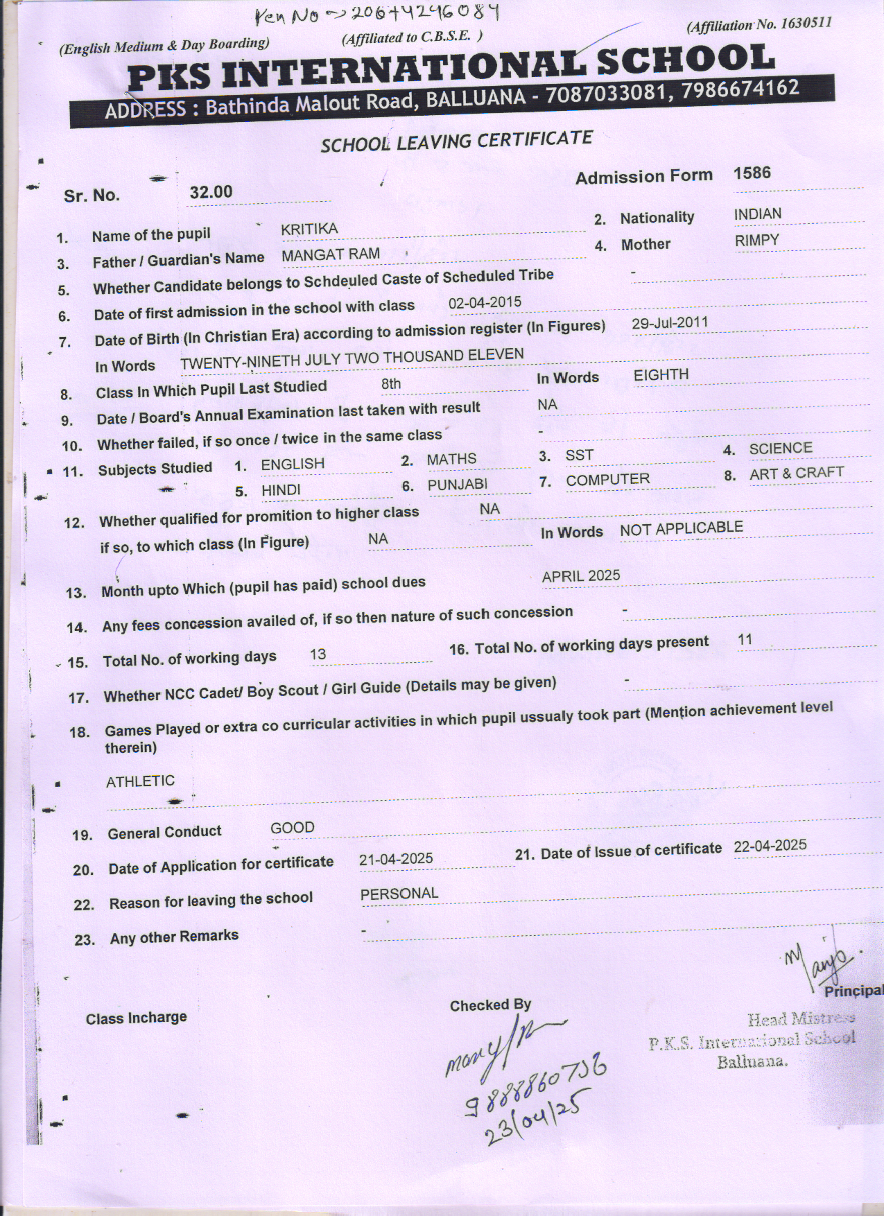 | 8 | Roop Kaur | 2910 | UKG | View |