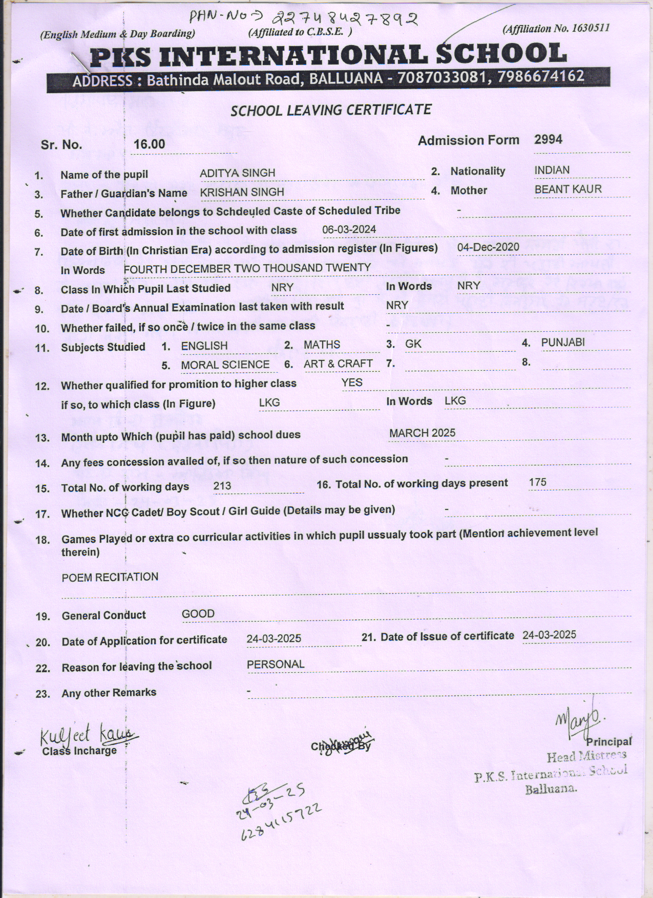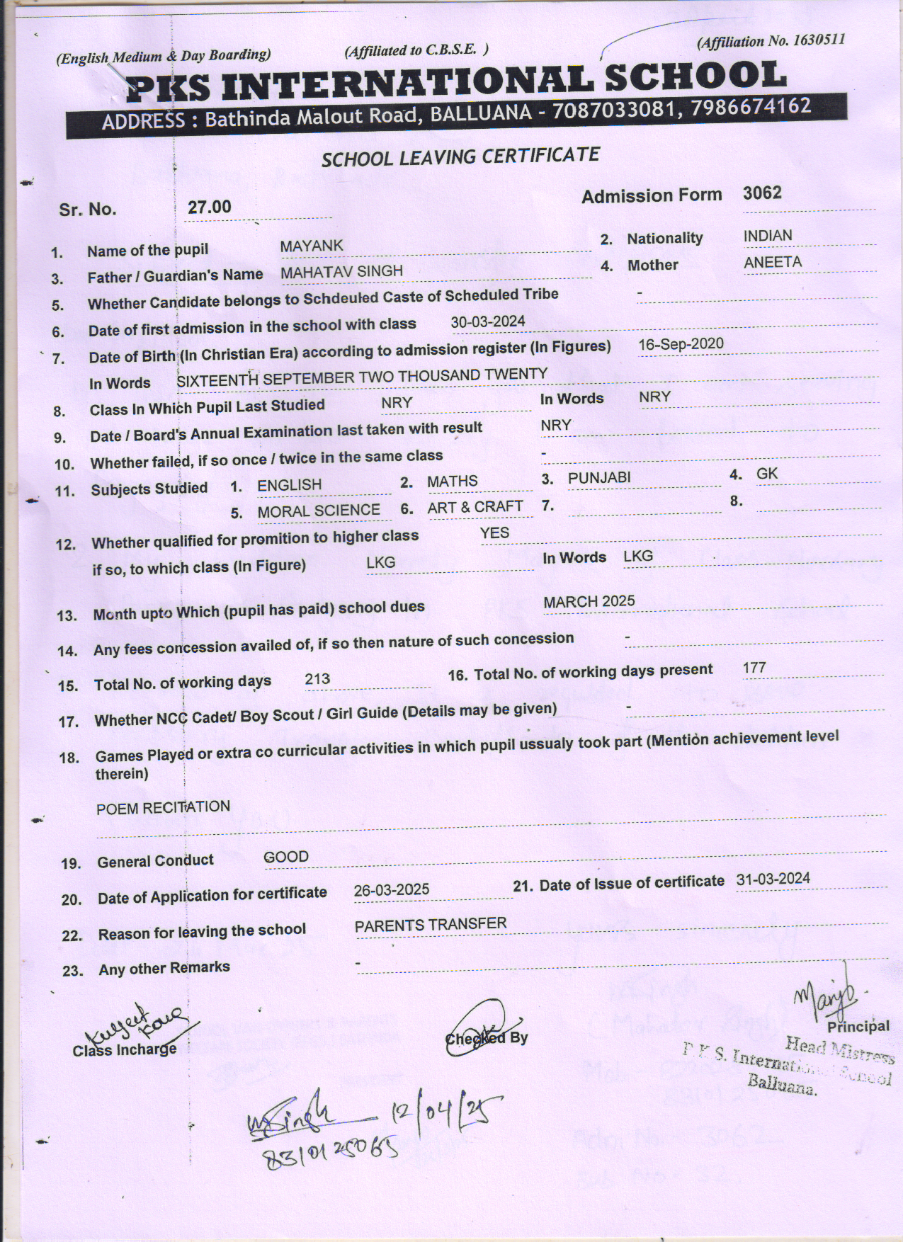| 7 | Aditya Singh | 2994 | LKG | View |