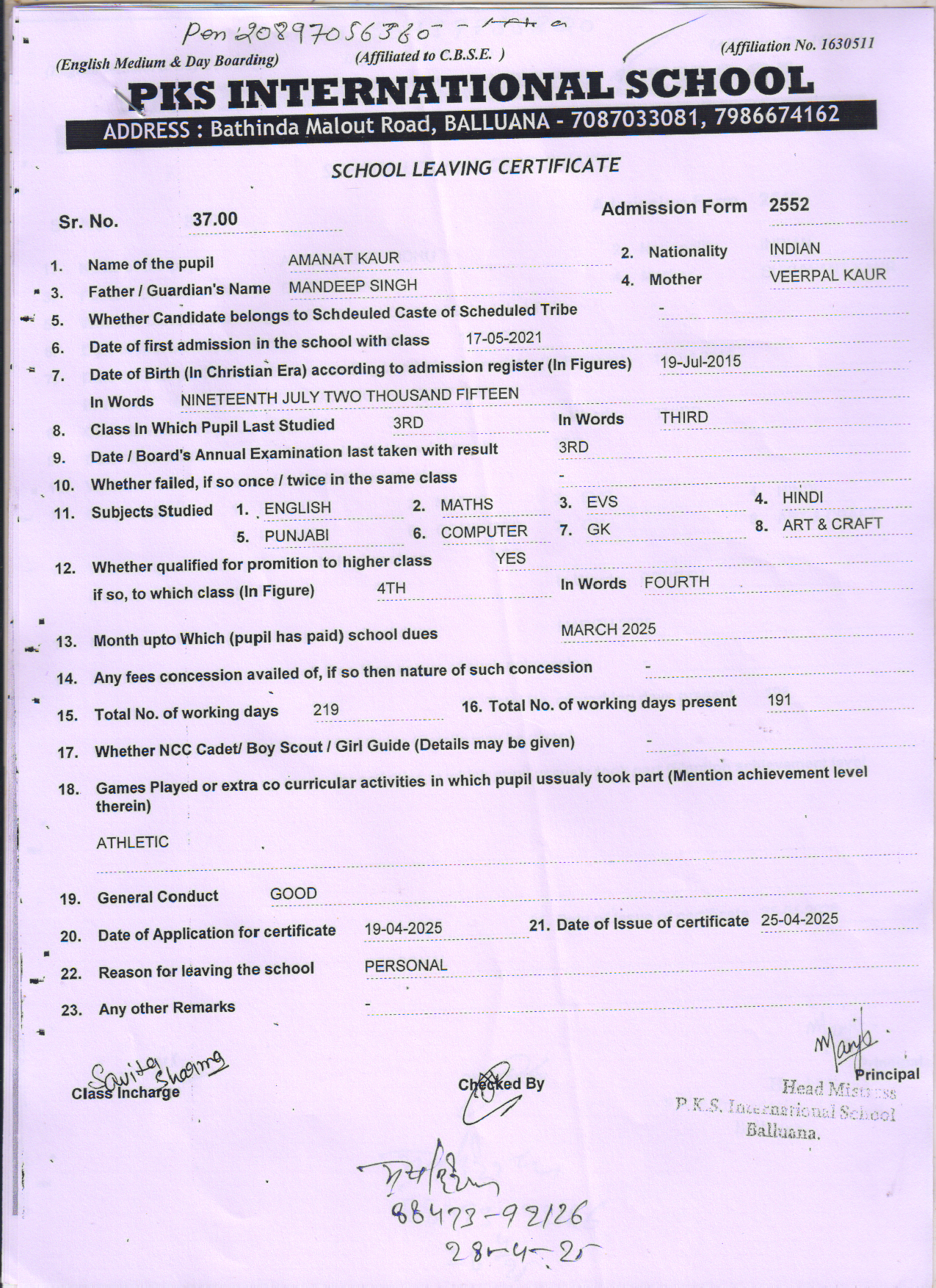 | 30 | Amanat Kaur | 2552 | 4th | View |