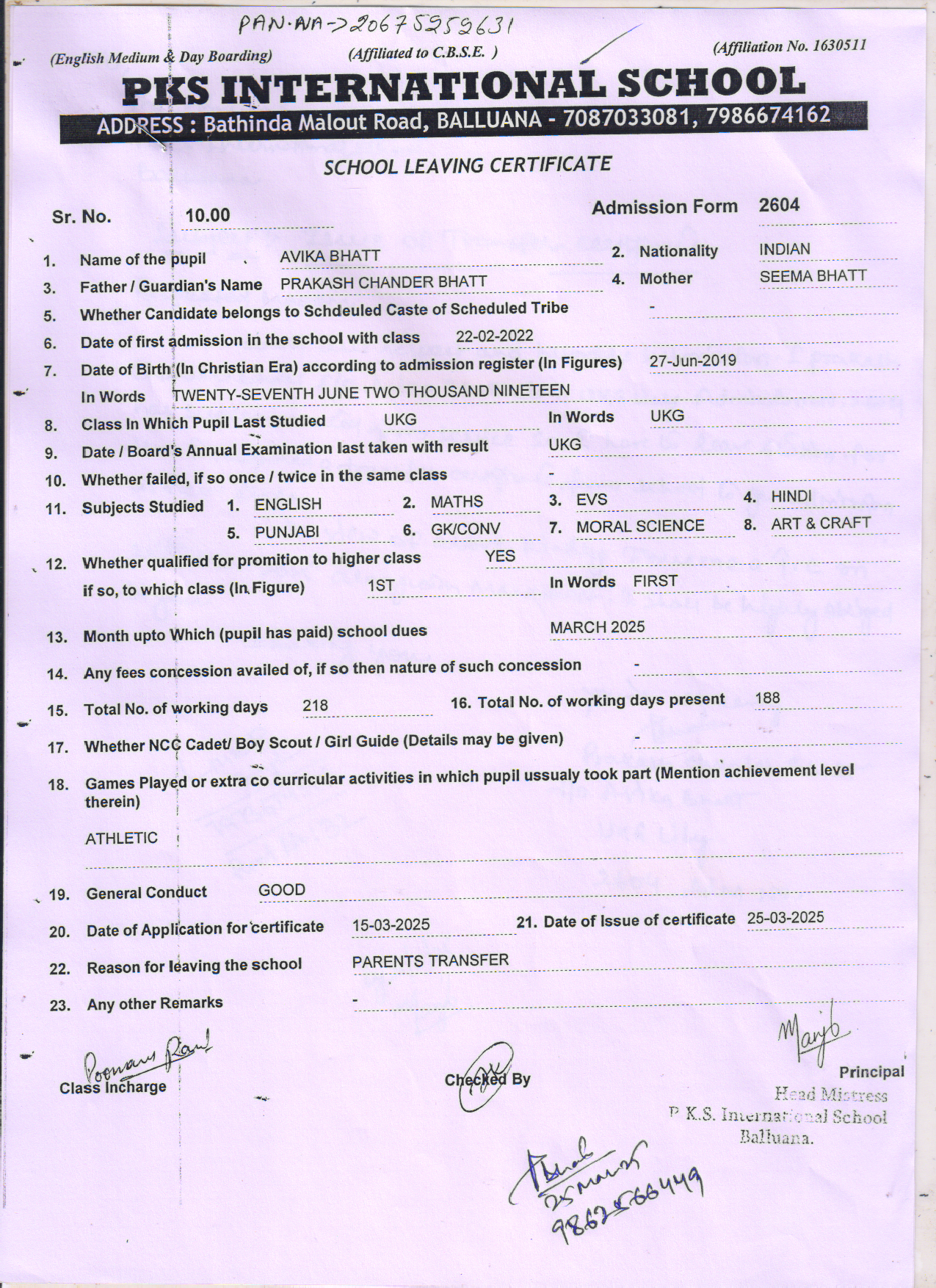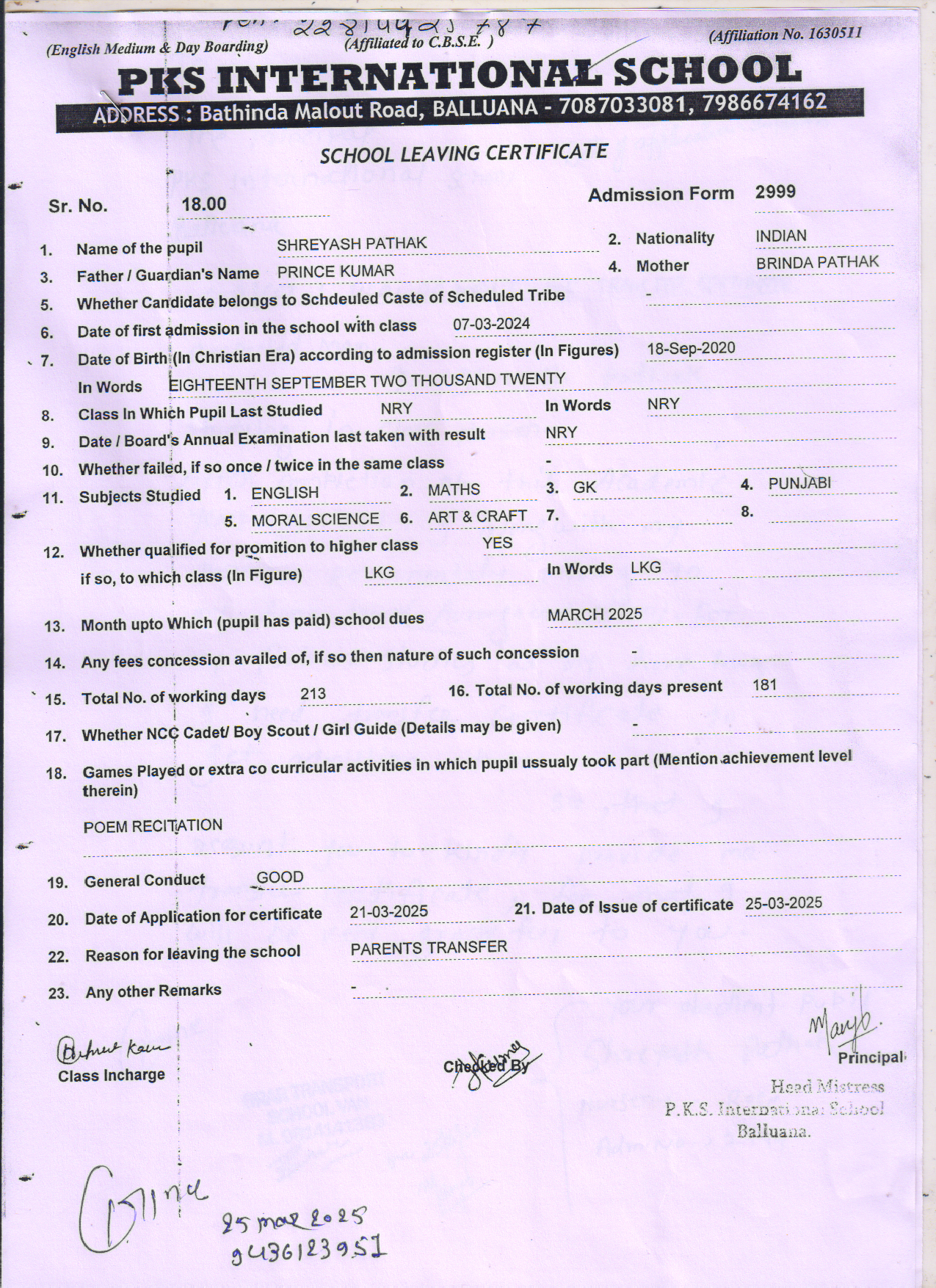 | 5 | Shreyash Pathak | 2999 | LKG | View |