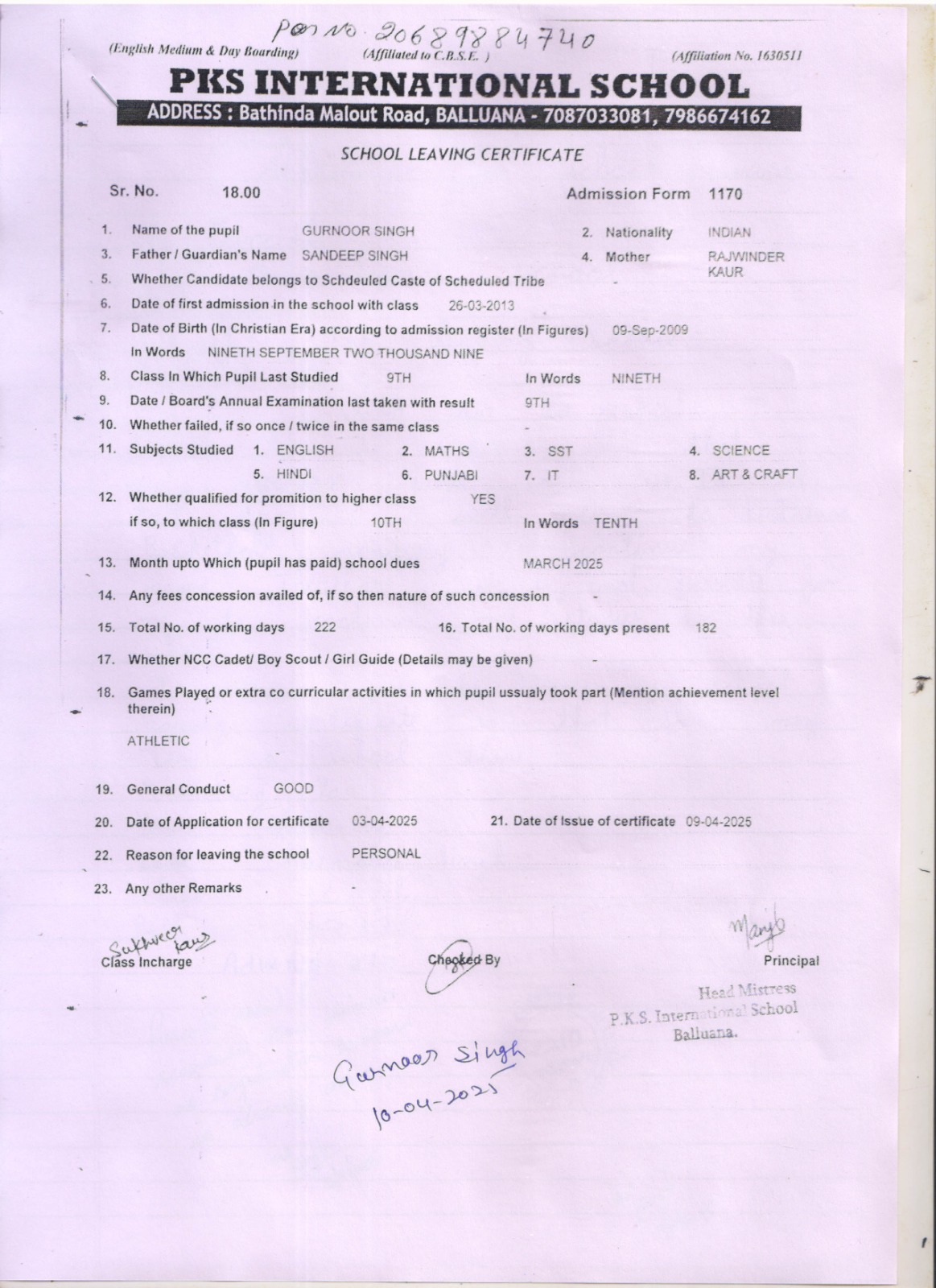 | 1 | Gurnoor Singh | 1170 | 10th | View |