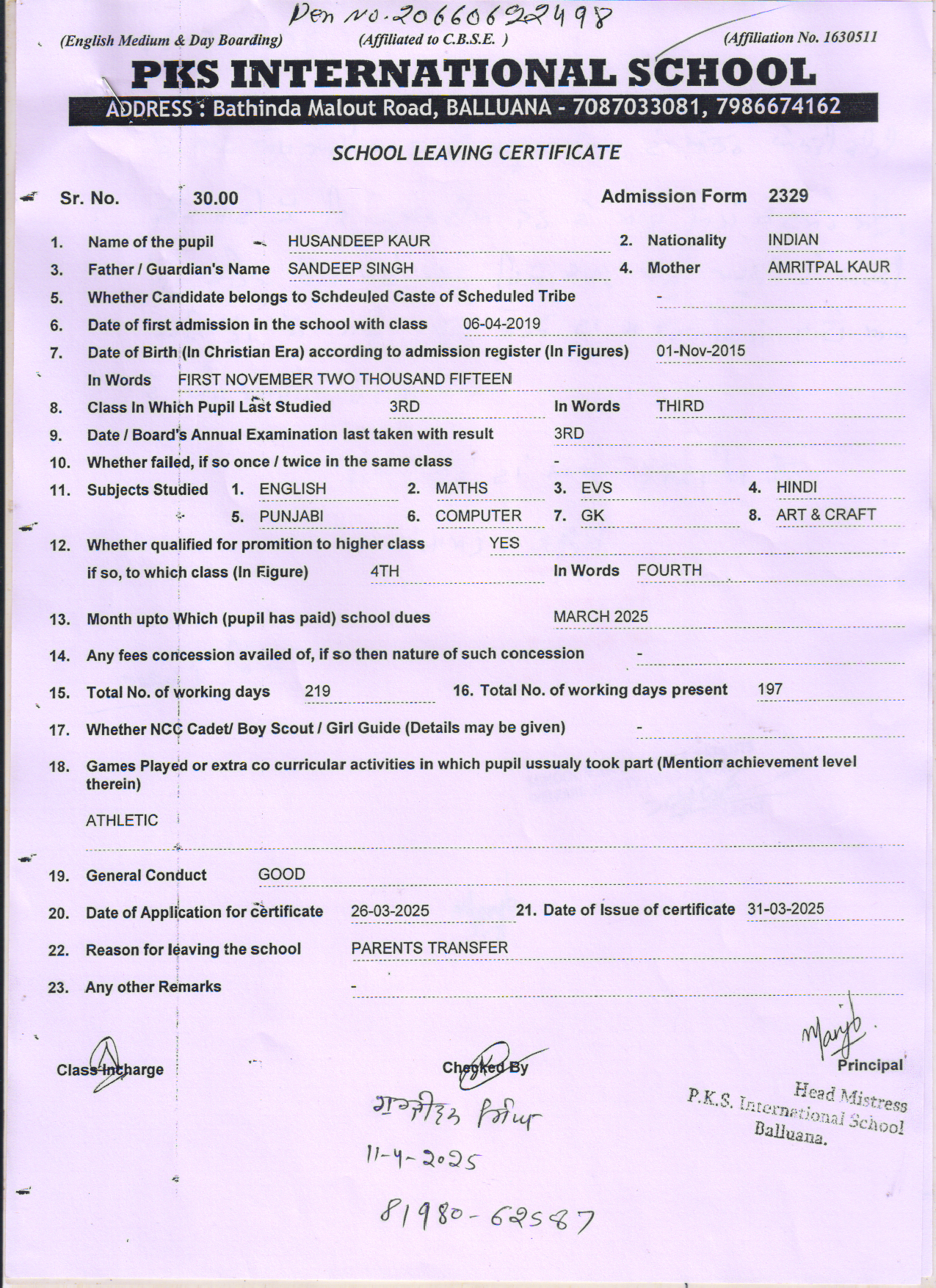| 26 | Husandeep Kaur | 2329 | 4th | View |