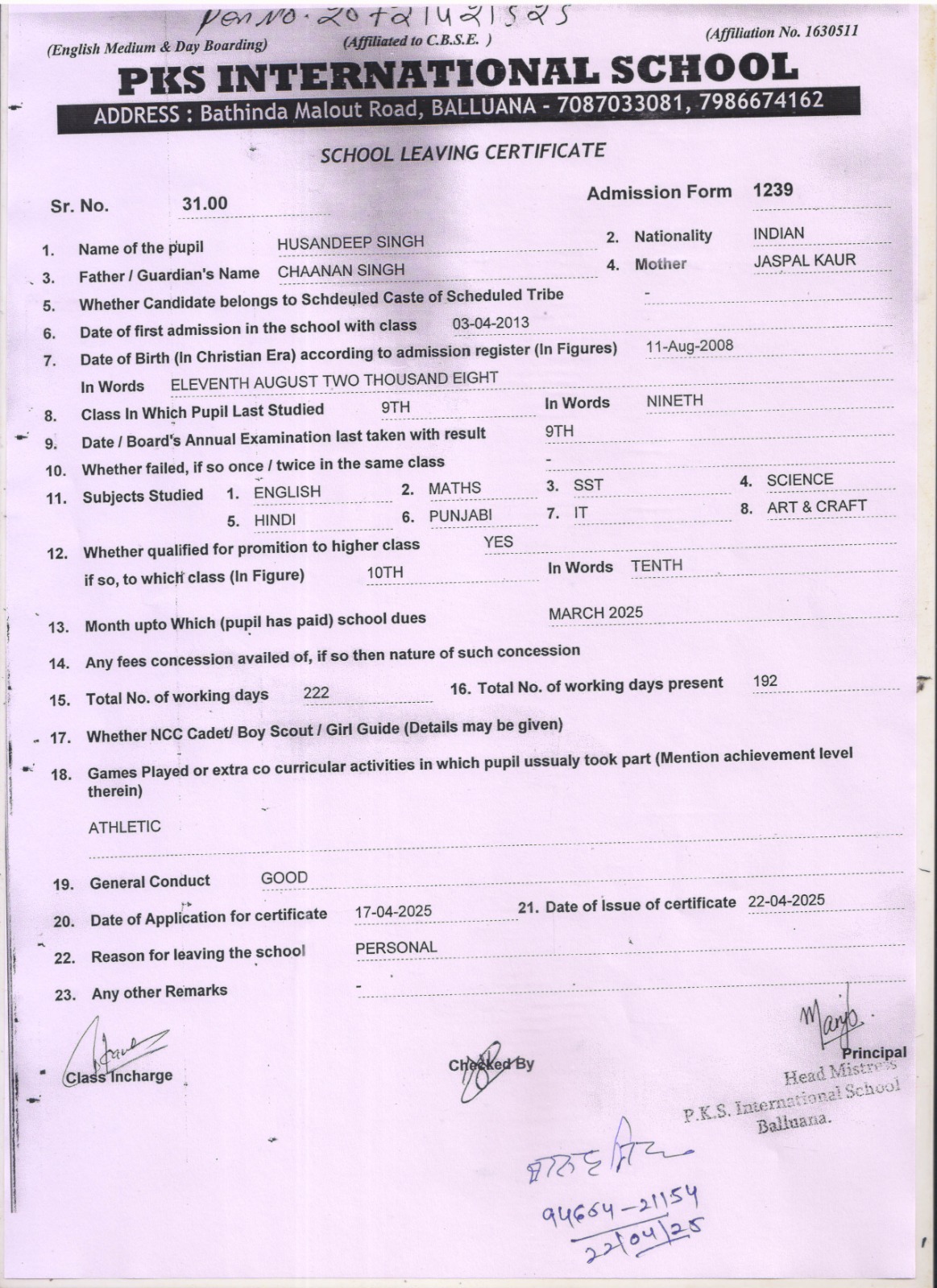 | 2 | Husandeep Singh | 1239 | 10th | View |