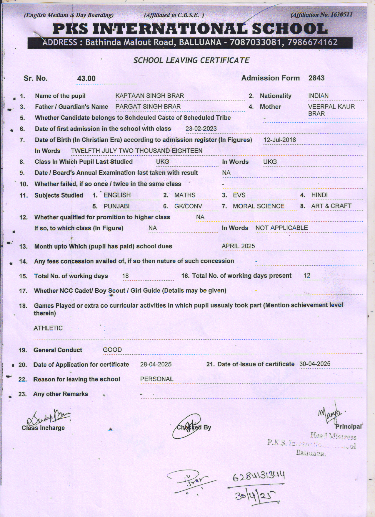 | 9 | Kaptaan Singh Brar | 2843 | UKG | View |
