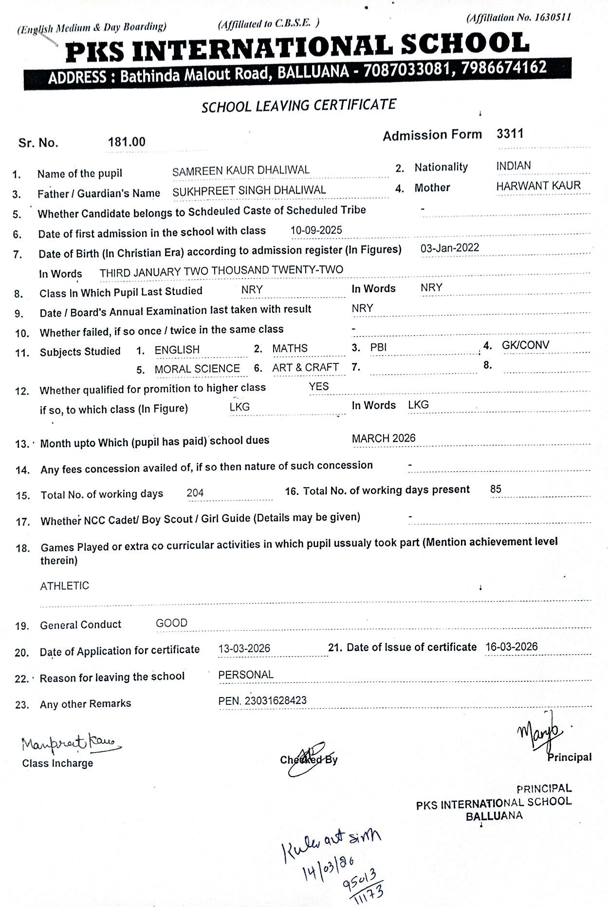 | 67 | SAMREEN KAUR DHALIWAL | 3311 | NRY | View |