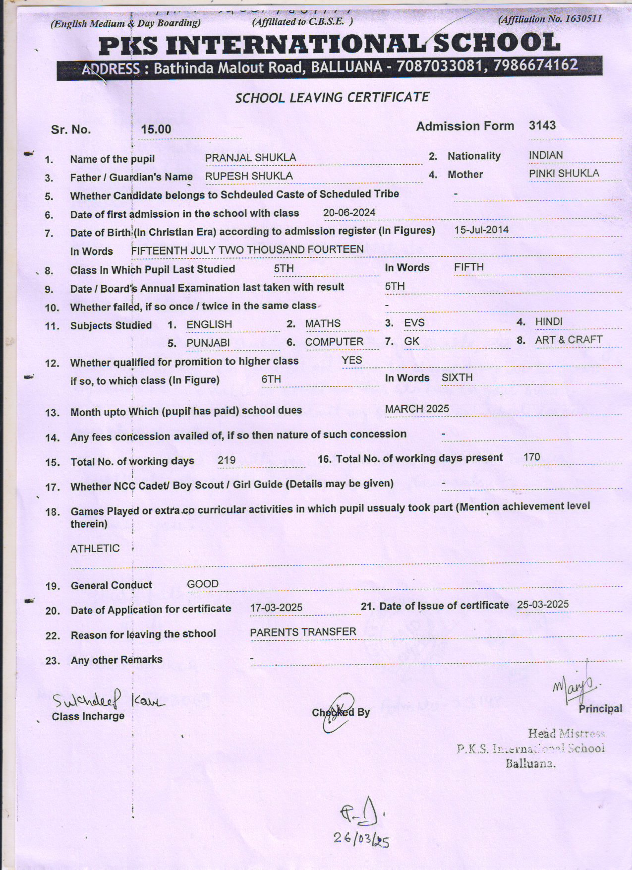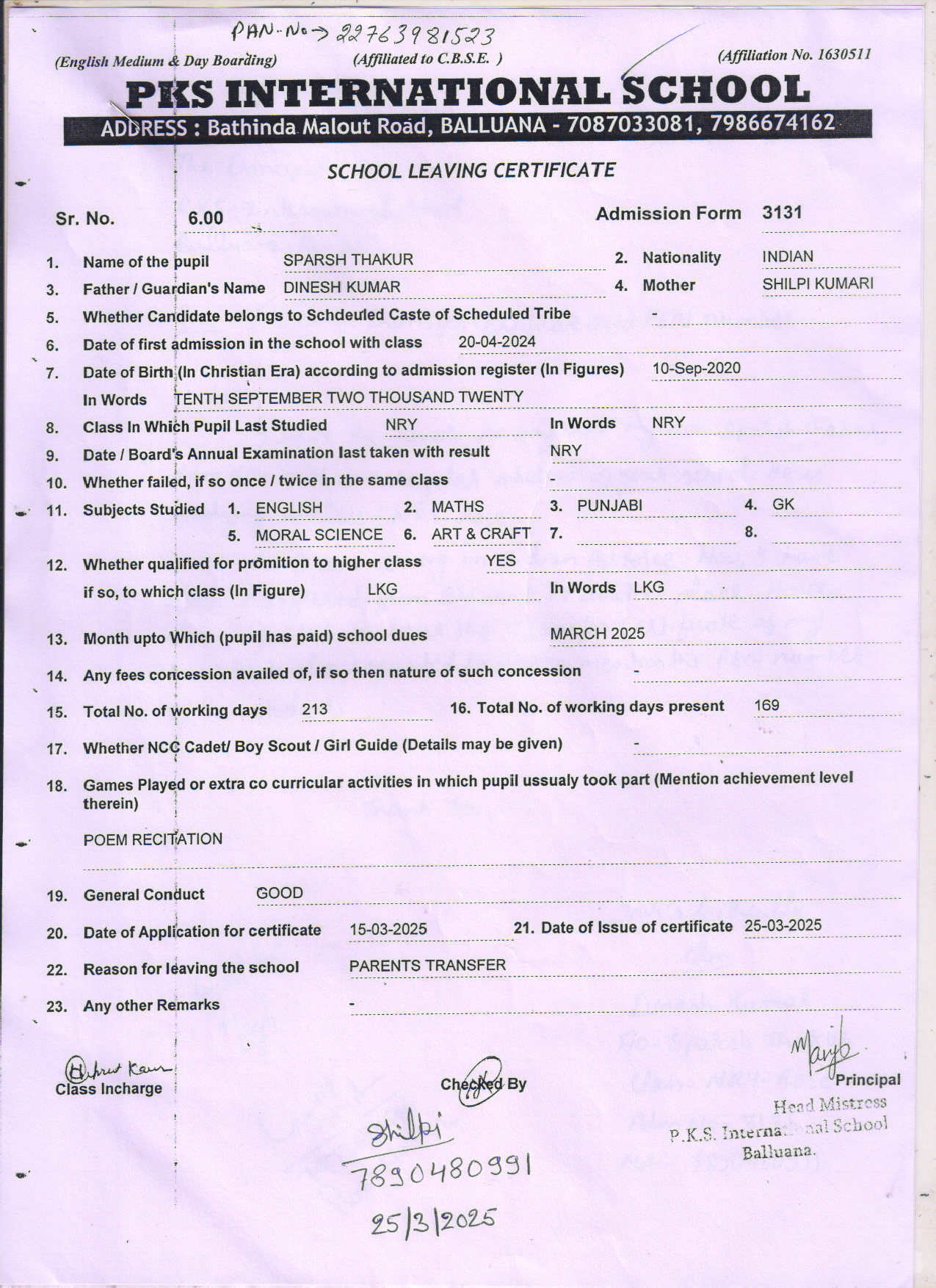 | 6 | Sparsh Thakur | 3131 | LKG | View |
