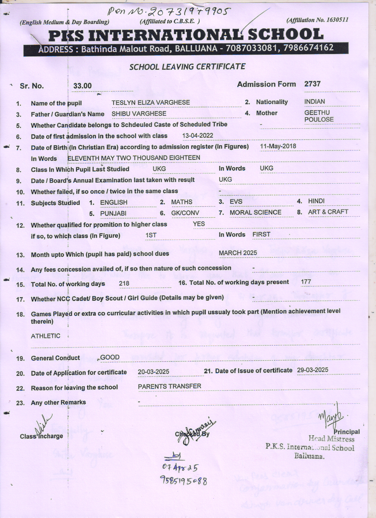 | 11 | Teslyn Eliza Varghese | 2737 | 1st | View |